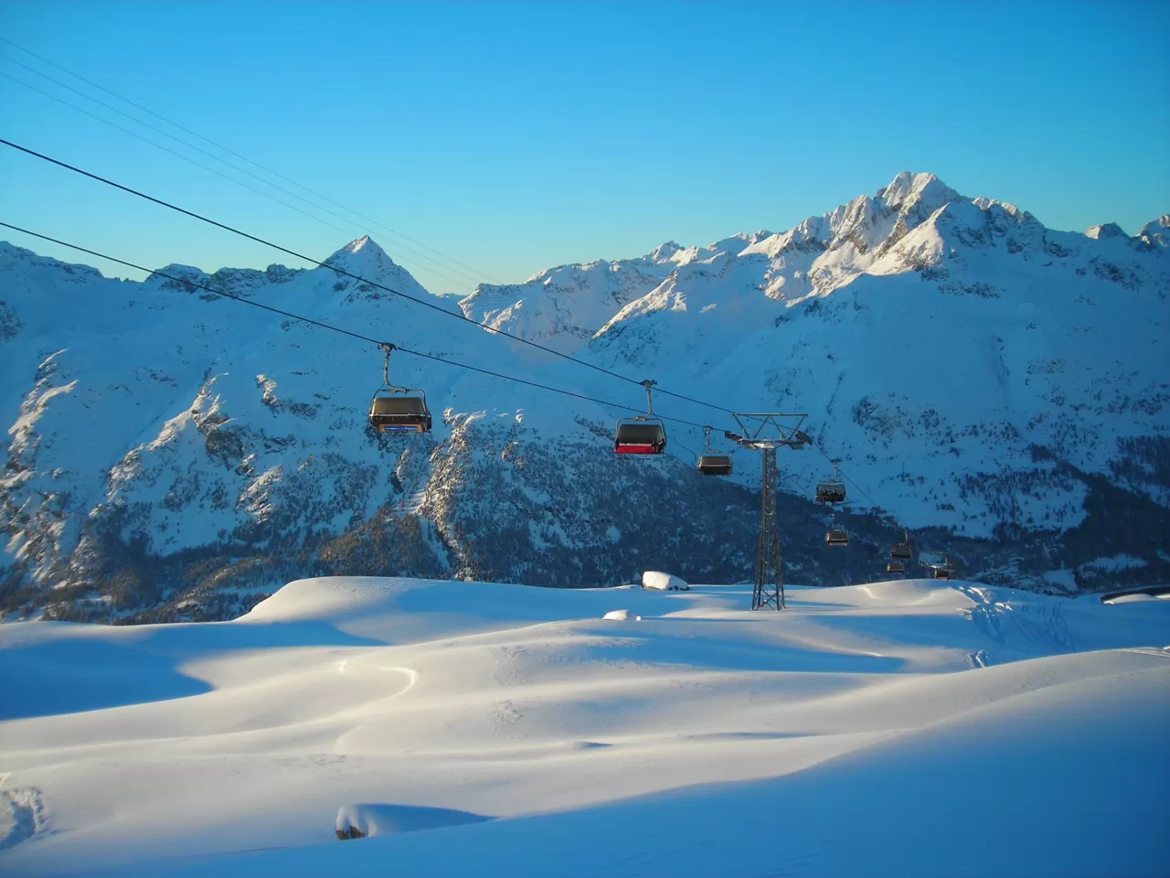 Partendo alla mattina, da Surlej, su in funivia fino alla Bergstation: 3.303 metri di altezza, il “top of Engadin”, la più elevata dei Grigioni. Siamo sul Corvatsch, da dove vale la pena di dare un’occhiata al panorama, tra cime alpine di grande bellezza. Ma per i “patiti” dello sci osservare il panorama è un momento: poi subito giù, sui tracciati di un comprensorio che propone 14 impianti di risalita e 120 chilometri di piste per ogni abilità, tra Corvatsch e Furtschellas.