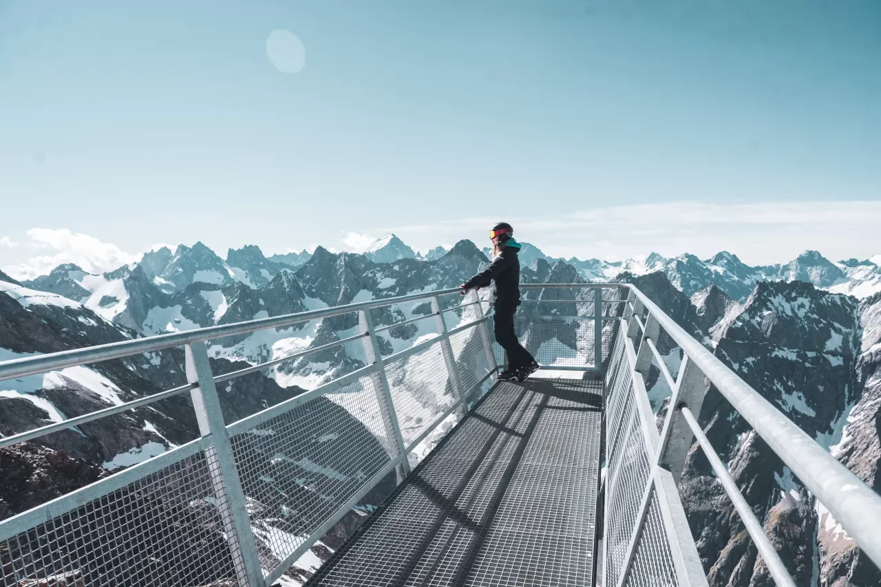 Les 2 Alpes offre la possibilità di passeggiate relativamente facili sul ghiacciaio. Ovviamente occorre essere muniti di attrezzatura adeguata (picozza, ramponi, corda e imbragatura) e di un minimo di allenamento perchè ci troviamo comunque a quote elevate. Tuttavia la presenza della telecabina Jandri prima e di una funicolare poi, permette di arrivare già in quota nel cuore del ghiacciaio senza sforzi. All'arrivo della funicolare sotterranea, a 3400 metri di quota, a pochi centinaia di metri più in basso, sul lato destro della montagna, è a disposizione un punto panoramico con un ponte che immette nel vuoto per assaporare la bellezza del luogo (in foto).