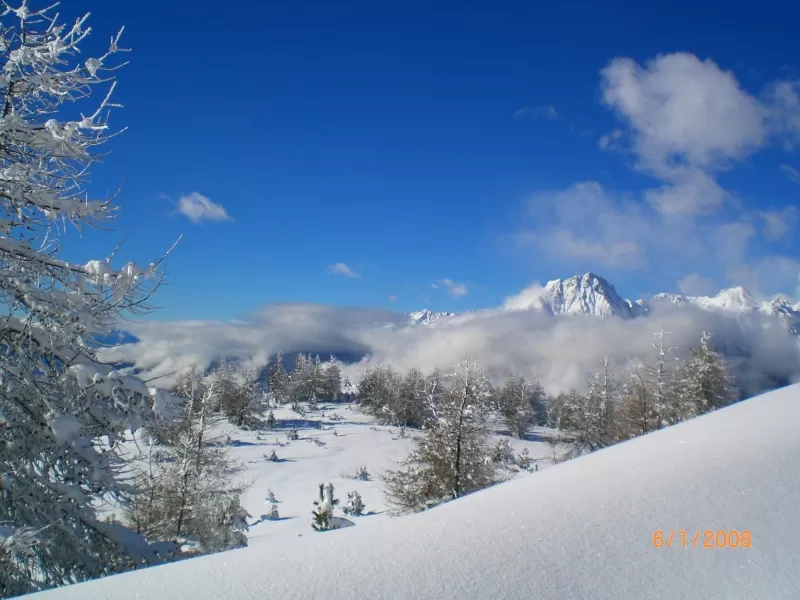 Ciaspolata facile/media di 4 ore, con dislivello di 350 m. Adatta a tutti.