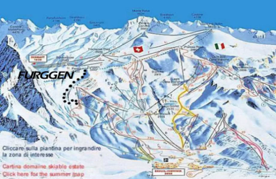Sino al 1993 dal Furggen scendeva una spettacolare pista che prendeva il nome dalla vetta dove arrivava la storica funivia. Lo scenario che si presentava agli occhi dello sciatore che saliva sino ai 3486 m era di quelli da lasciare senza fiato: l'occhio spaziava tra numerose cime che superavano i 4000 metri come il Breithorn, il Liskamm e lo stesso Cervino, davvero vicinissimo. Pochi erano gli sciatori che la percorrevano, un po' per la difficoltà della stessa e un po' per la scarsa portata dell'impianto. I costi di gestione erano comunque alti. Una mattina il ghiaccio accumulato sul cavo della funivia ne determinò la rottura prima della scadenza naturale dell'impianto. La Cervino spa, dopo aver valutato e bocciato alcuni piani per ricostruire l'impianto, decise di abbandonarlo. La stessa triste sorte toccò, ovviamente, anche alla pista. Un lungo e stretto corridoio portava dalla stazione di arrivo della funivia sino all'inizio della pista. Qui dopo una scalinata, si indossavano gli sci e si cominciava a scendere. Il tracciato scendeva verso valle tra splendidi scenari e muri divertenti, lambendo la base del Cervino. Ad un certo punto la pista voltava decisamente verso sinistra e puntava verso le piste più tranquille del Cretaz.