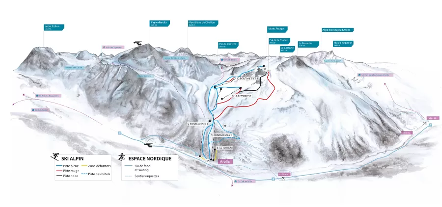 Oltre lo sci alpino lo sportivo trova diversi chilometri di tracciati di fondo preparati, tra cui una bella pista da fondo che sfiora il ghiacciaio di Arolla e il fiume Borgne. Coloro che amano camminare con le racchette da neve non rimangono delusi. Attraversando la Val d'Hérens si scopre 85 km di percorsi provvisti di segnaletica e delle dovute misure di sicurezza. Gli itinerari si snodano in boschi e radure nonché in villaggi dal carattere originale. Ci si può dedicare anche ad altri sport invernali: freeride, sci d'alpinismo sulle numerose cime a cui si può accedere anche con l'eliski.