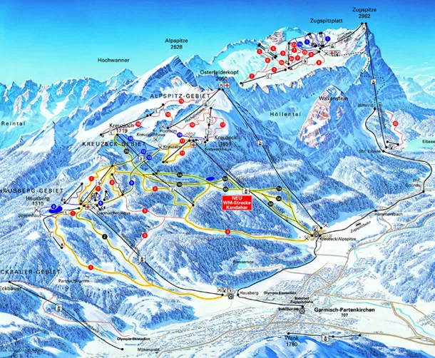 Il comprensorio di Garmisch-Partenkirchen presenta due distinte stazioni sciistiche: Garmisch Classic e Zugspitze. Garmisch Classic, con una quarantina di chilometri di discese, 19 piste di sci alpino e 18 impianti di risalita, è a sua volta divisa in tre aree: Hausberg, Alpspitze, Kreuzeck. Hausberg e Alpspitze propongono le discese più facili, mentre a Kreuzeck si tengono le prove della Coppa del Mondo.1 snowpark a Hexenkessel ed una pista slittino completa...