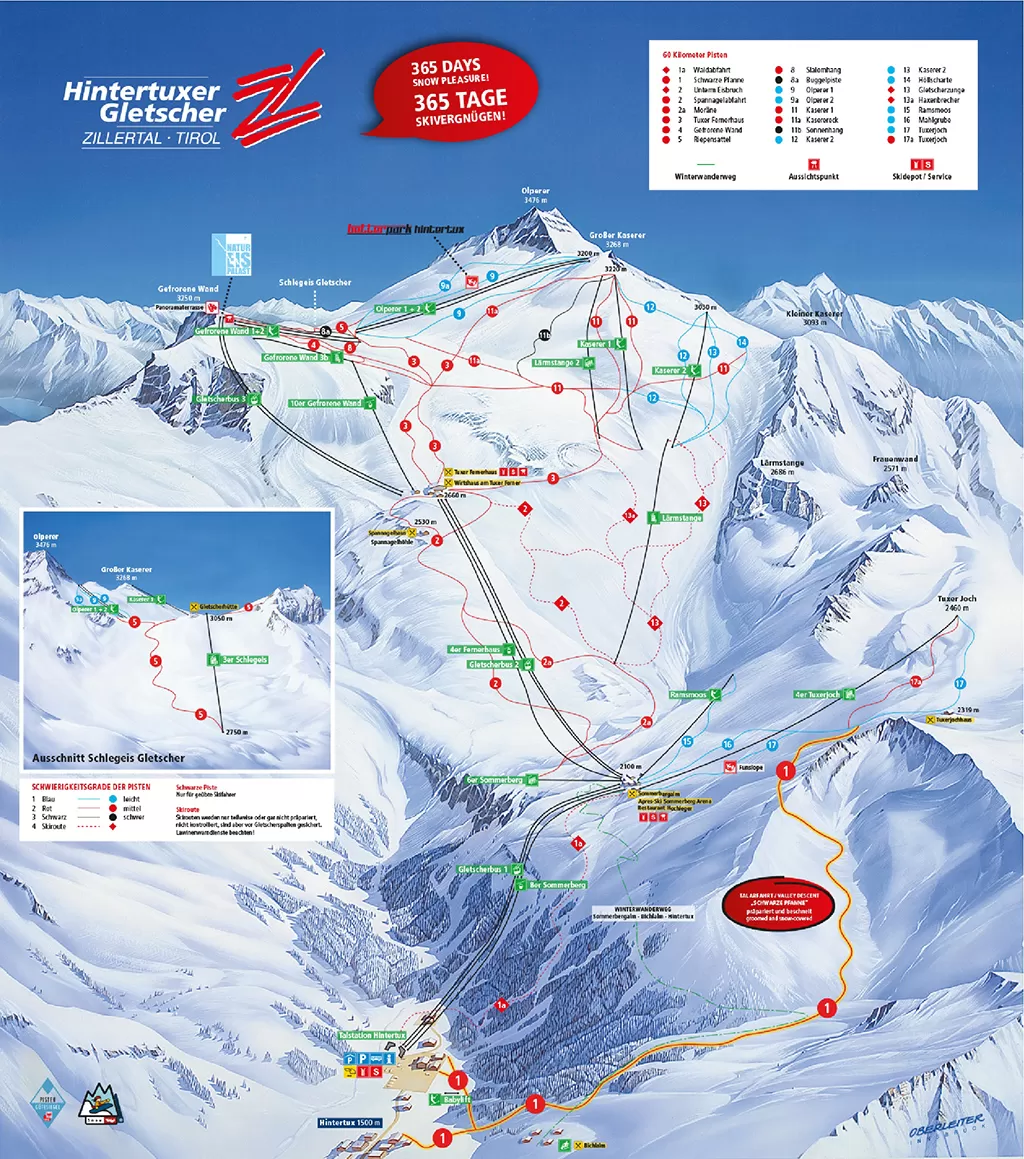 Hintertux fa parte dello Ski Zillertal 3000 con Mayrhofen, Finkenberg e Tux,