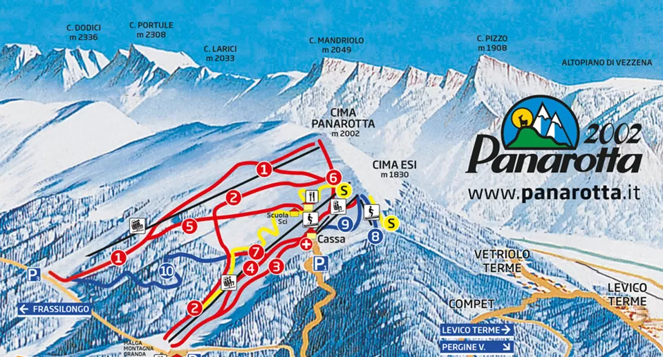 Panarotta è una tranquilla località sciistica del Trentino in Valsugana, adatta per lo più a famiglie con bambini. E' possibile sciare su 10 km di piste di sci alpino immerse nei boschi tra 1500 m e 2002 m. Da qui il nome Panarotta 2002. Le piste sono sette di cui 3 facili, 3 di media difficoltà che raggiungono Malga Montagna Granda e una pista difficile, Rigolor di 2200 metri, che scende da Cima Panarotta, a 2002 metri fino al parcheggio 3 a 1518 metri. Il mercoledì sera, fino alle 23,30, c'è la possibilità di divertirsi sulle piste dalla Panarotta, con il Rifugio Panarotta aperto. Anche i più piccoli si possono divertire sulla neve in tutta sicurezza nel Gronlait Baby Parco, sulla pista Furet un tapis roulant divide la discesa in due comode piste, una dedicata alle slitte ed una per imparare a sciare. Nel 2021 è stata realizzata una nuova pista per gli appassionati dello slittino. Il tracciato parte da 1800 metri di quo...