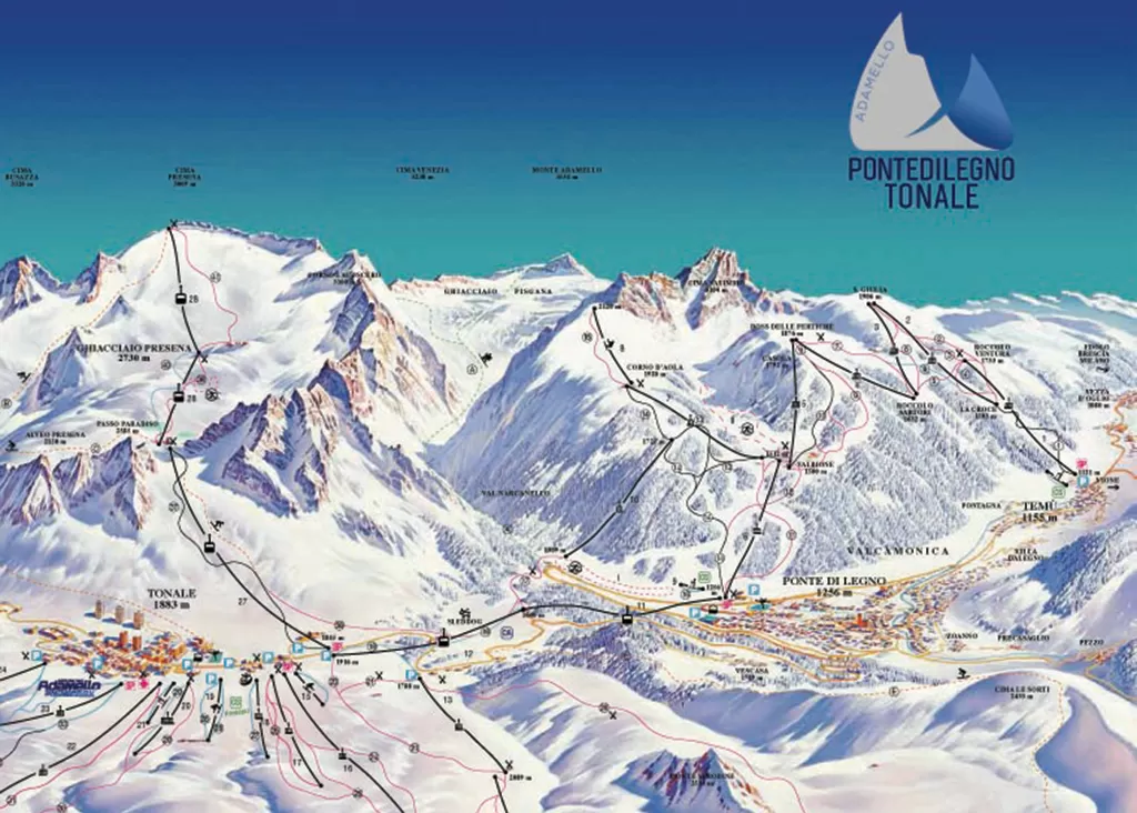Parte di un comprensorio ben più ampio, si caratterizza per un buon numero di piste facili nella parte centrale della skiarea e piste più divertenti alle estremità orientali e occidentali della stazione con la Bleis da una parte e Contrabbandieri e Tonale Occidentale dall'altra. Da non perdere assolutamente una visita al Ghiacciaio Presena e per i più esperti qualche ora a Temu' e Ponte di Legno
