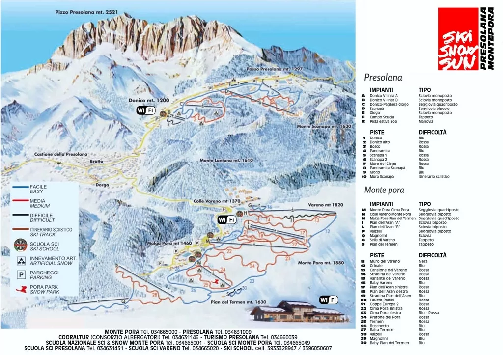 Al Passo della Presolana in località Donico, 9 le piste per lo sci alpino adatte sia ai principianti sia ai più esperti. E' il primo centro in Lombardia per l'insegnamento dello sci per portatori di handicap fisici. Lo Ski Stadium è accessibile a tutti, con cronometro automatico.