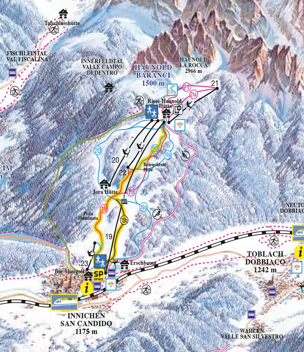 Per il fondo 5 piste (3 di media difficoltà e 2 facili) per circa 22 km portano verso il confine di stato o verso Dobbiaco; la rete di piste raggiunge i 70 km nella valle ed è inserita nell’immenso carosello fondistico Dolomiti NordicSki. Coloro che non sciano possono effettuare avvincenti escursioni con le ciaspole, passeggiate invernali fino ai numerosi masi o lungo il fiume Drava fino a Versciaco, oppure rilassarsi all'acquafun nella piscina coperta, nella sauna o nella beauty, a San Candido.