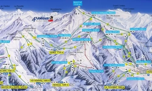 Del comprensorio Les Quatre Vallées fanno parte Thyon, Veysonnaz, Verbier, Siviez, Nendaz, La Tzoumaz