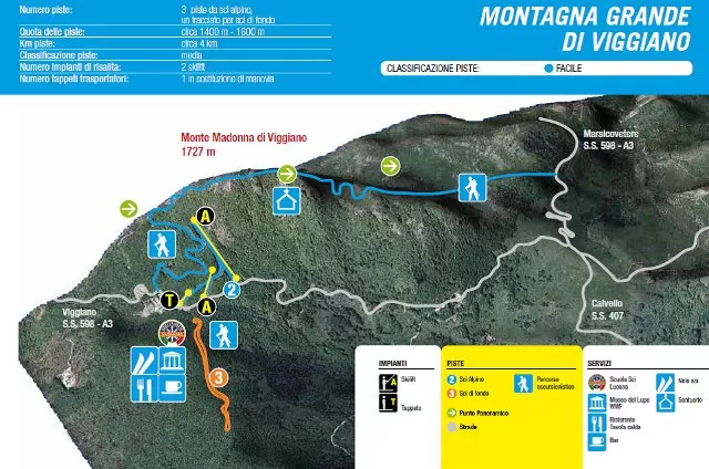 La stazione sciistica Montagna Grande di Viggiano è situata sull’Appennino Lucano, sul crinale orientale dell'alta Val d'Agri. Il Monte di Viggiano (1723 m) è un massiccio roccioso dalla forma allungata che dista circa 11 Km dal centro abitato e spicca in mezzo alla vegetazione di faggi.