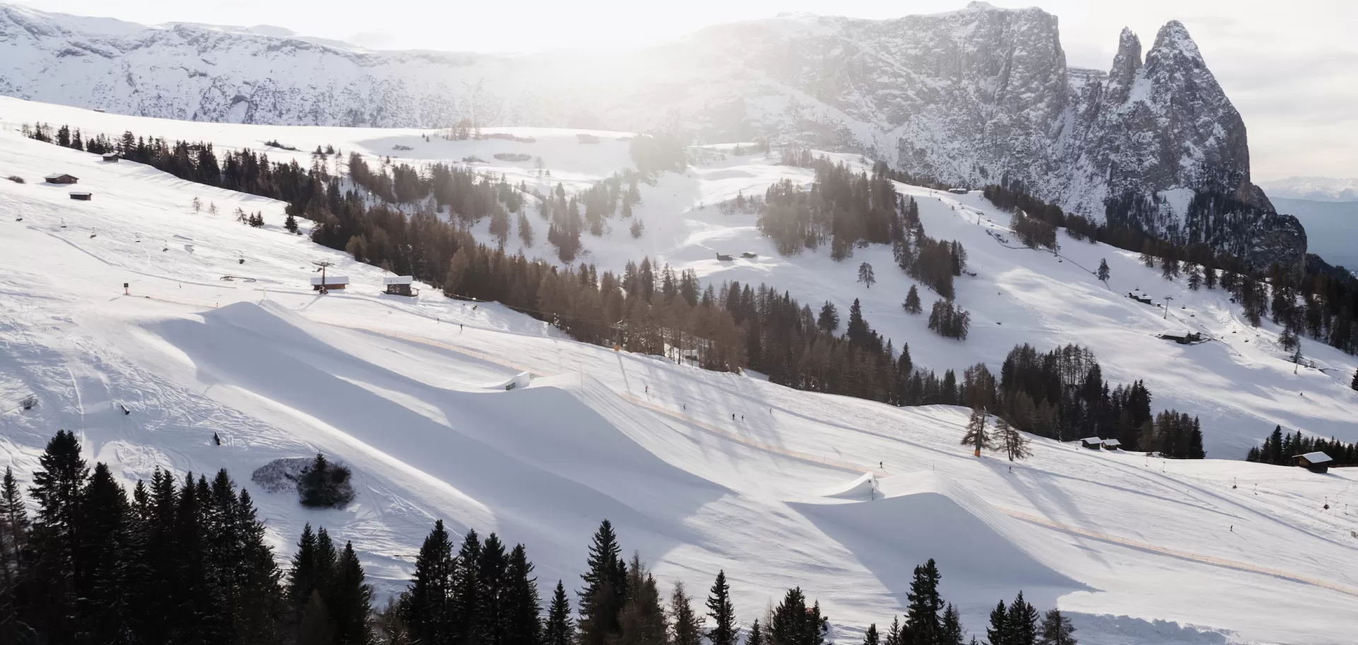 Lo snow park dell'Alpe di Siusi è uno dei migliori delle Alpi e, senza dubbio, uno dei più panoramici.