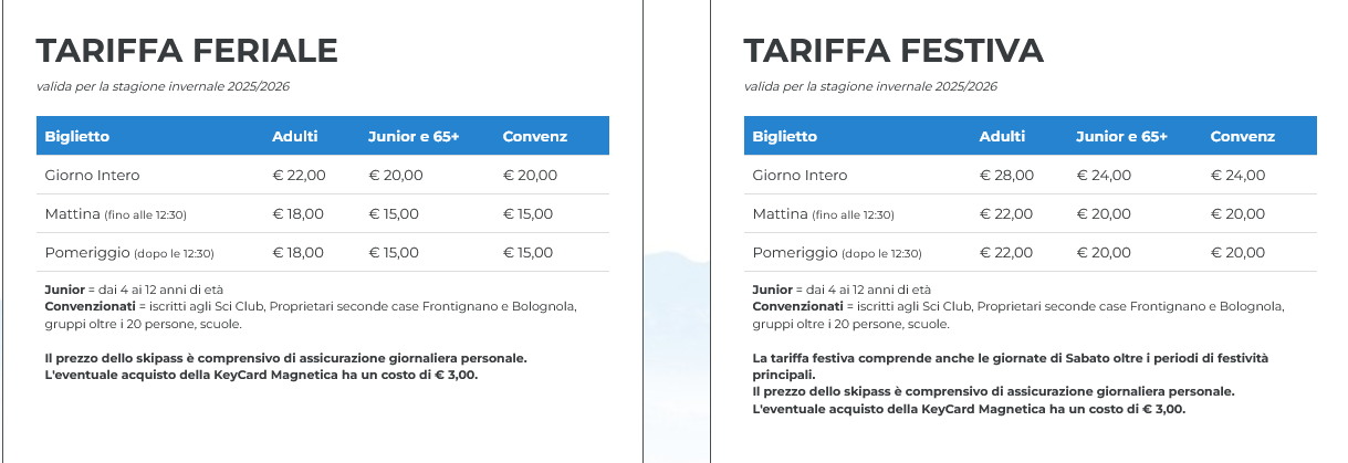 LISTINO PREZZI SKIPASS 2025 - 2026