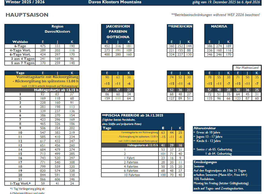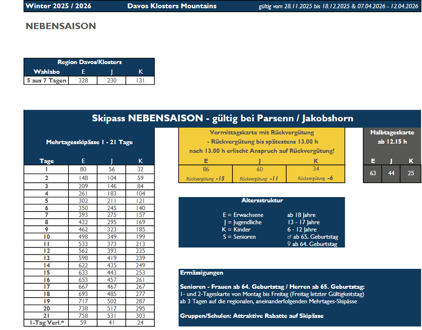 LISTINO PREZZI SKIPASS 2025 - 2026 DAVOS