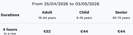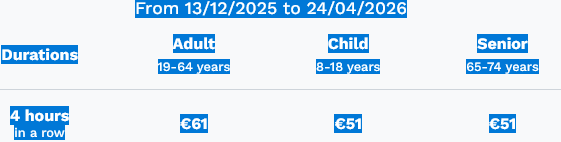Skipasses are free of charge for the under 8s and from the age of 75s, upon proof of id.