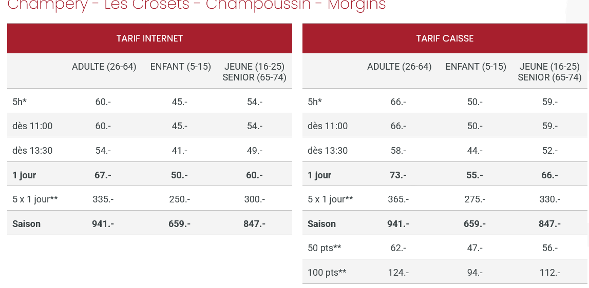 LISTINO PREZZI SKIPASS 2025 - 2026 LES CROSETS CHAMPERY