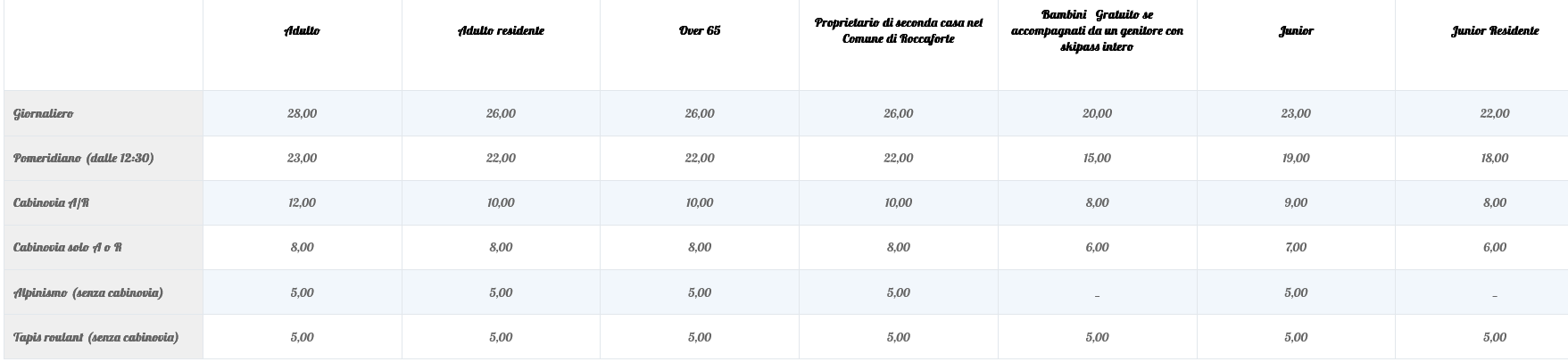 LISTINO PREZZI SKIPASS LURISIA MONTE PIGNA 2025 - 2026