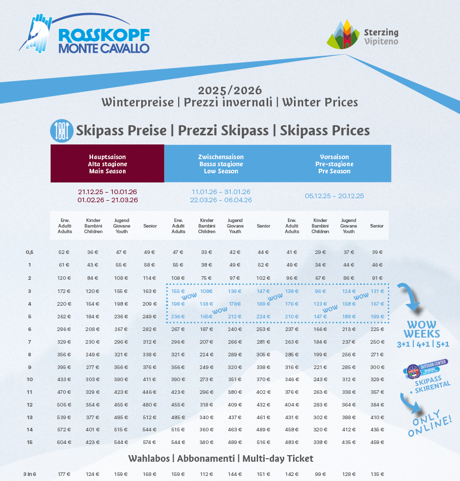 Skipass Monte Cavallo Vipiteno 2025 - 2026