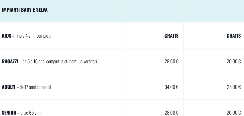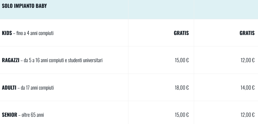 LISTINO PREZZI SKIPASS MOTTARONE 2025 - 2026