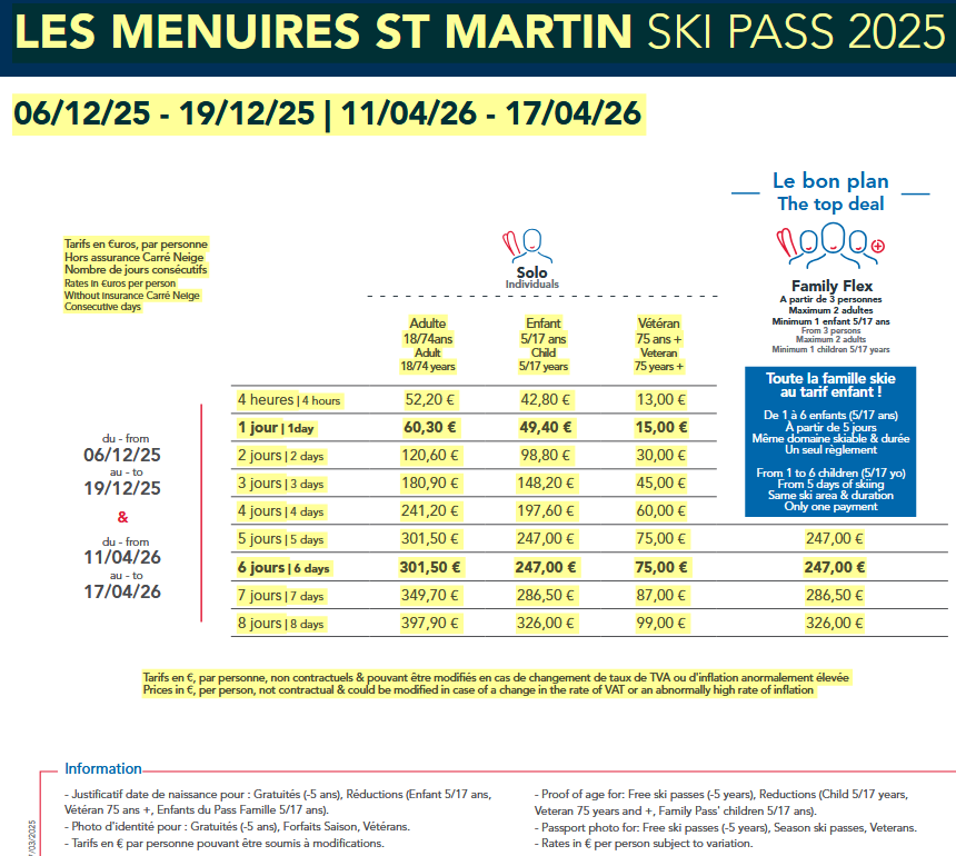 LISTINO PREZZI SKIPASS 2025 - 2026