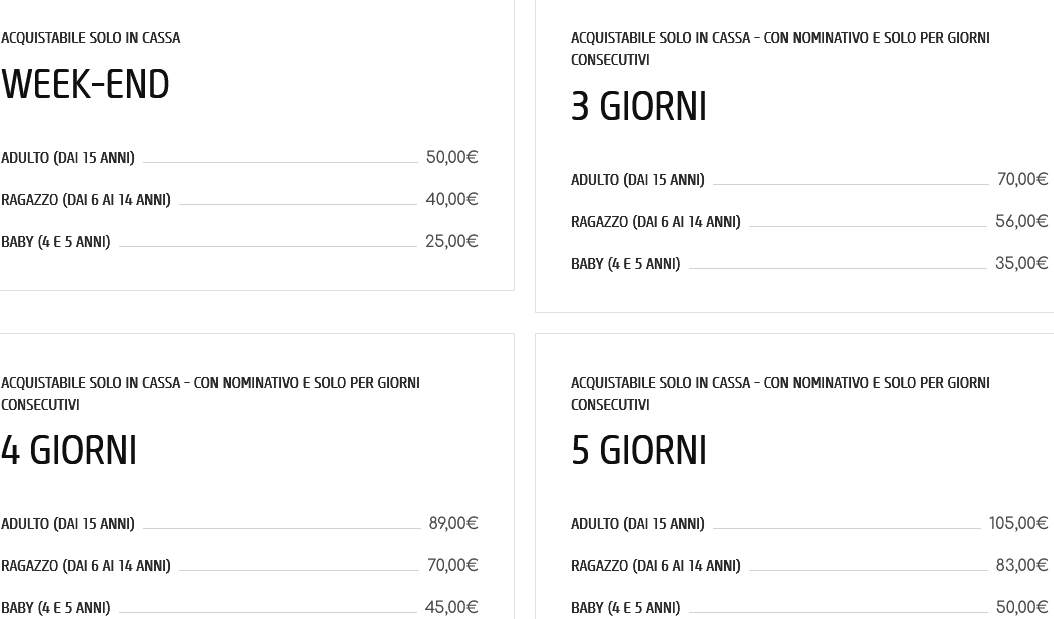 LISTINO PREZZI SKIPASS SAMPEYRE 2025 - 2026