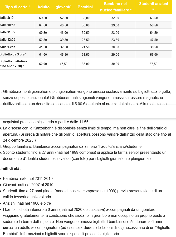 LISTINO PREZZI SKIPASS 2025 - 2026 VILLACH GERLITZEN