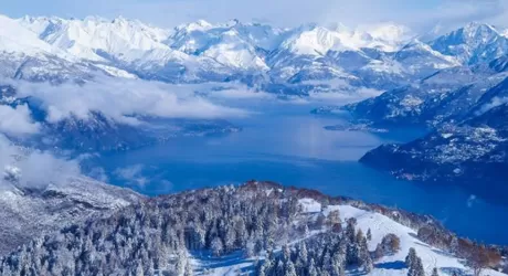Piccola e panoramica località sciistica della Valsassina, lo ski-lift dell'Alpe Giumello serve una pista interessante per una gita sciistica domenicale vista lago