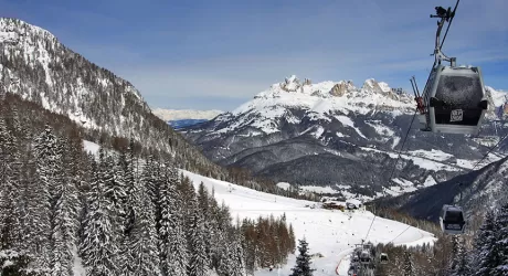 Da Alba di Canazei si sale con la funivia Ciampac in un valido comprensorio sciistico con piste interessanti e collegato con Pozza di Fassa - Buffaure...