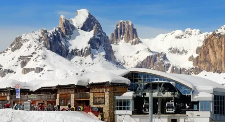 Il Passo Rolle, a pochi chilometri da San Martino di Castrozza, è una piccola ski area su uno dei più suggestivi passi dolomitici
