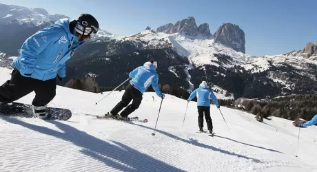 Canazei, la perla della Val di Fassa, offre eccellenti piste e l'accesso al Sellaronda. Qui vi sentirete al centro di un universo dello sci, ideale per una settimana bianca itinerante sci ai piedi