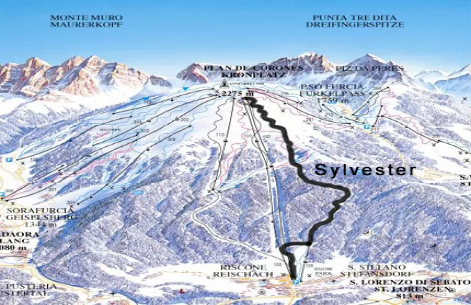 La pista Sylvester è una delle più difficili (ed emozionanti) del comprensorio sciistico del Plan de Corones. Per la verità la pista nacque nel lontano 1971 come scelta "di ripiego". Si stava valutando la possibilità di costruire una pista che scendesse sino a Brunico. “Noi volevamo il tracciato della pista Hernegg, ma le locali imprese di costruzioni mi hanno risposto picche: lì non ci vado con la ruspa, è stata la risposta.” Così é stato scelto il tracciato della Sylvester. Averne di ripieghi così, aggiungiamo noi..