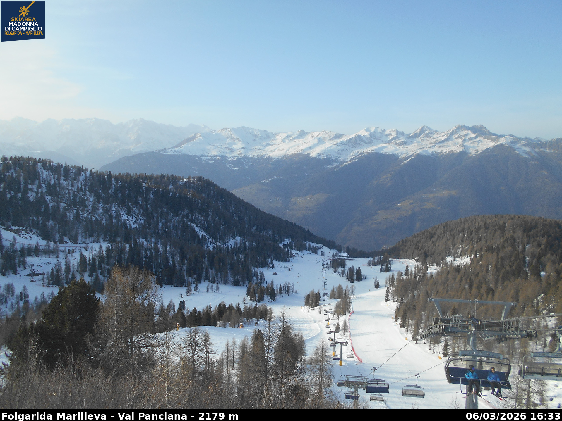 Webcamlive Folgarida - Marilleva. Le webcam sul comprensorio sciistico di Marilleva, in Val di Sole (Trentino). Le webcam permettono di vedere l'innevamento e le condizioni meto sul Monte Vigo, Mlaghet Aut, Daolasa, sul Monte Spolverino, una webcam inquadra poi il Gruppo del Brenta visto dalle piste di Marilleva.