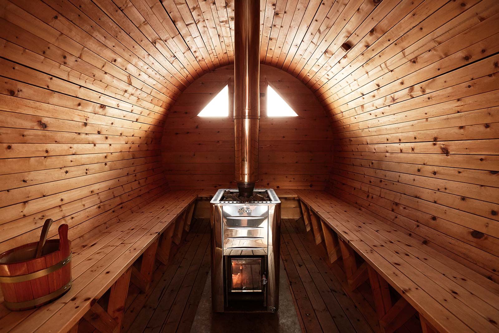 La sauna finlandese, con la sua stufa a legna, è l'ideale per liberarsi dallo stress delle città e riscaldarsi dopo il freddo accumulato in una giornata di sci.